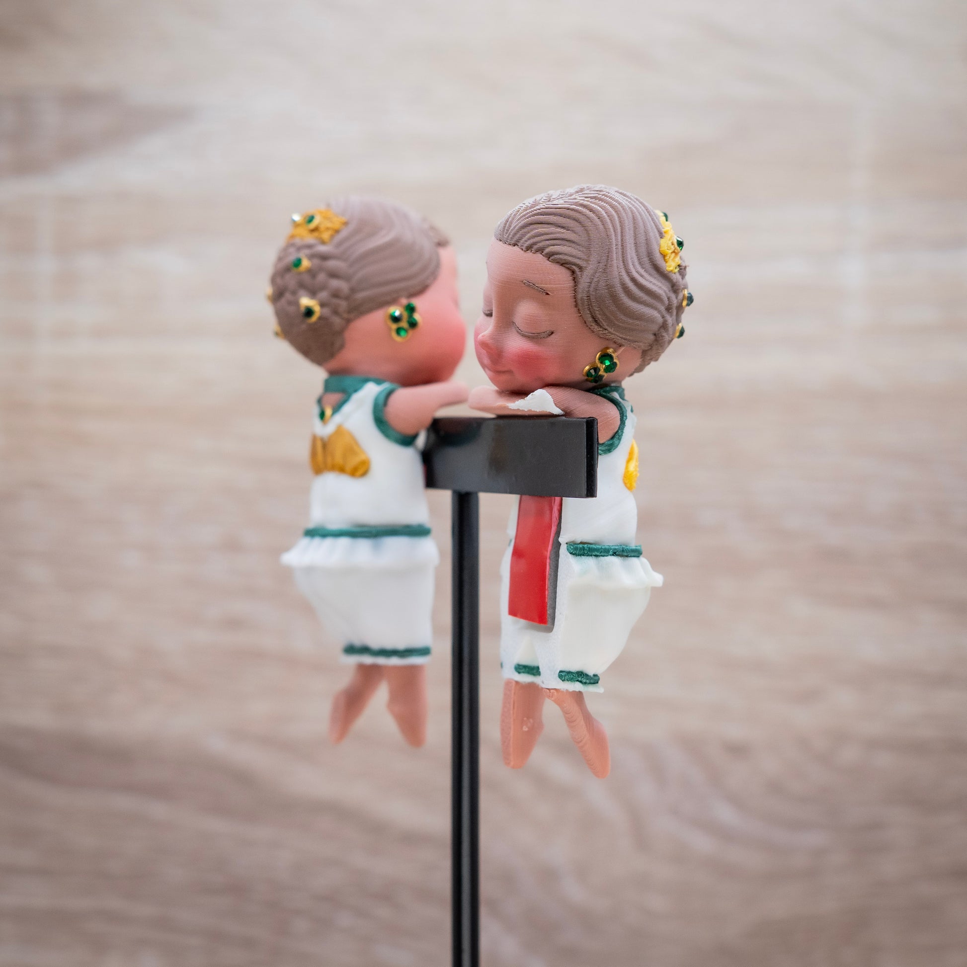 La Angeleta Castellonera es la forma perfecta para llevar contigo la fiesta de la Magdalena! Con su opción personalizada, podrás elegir color de pelo y adrezo! Si quisieras un color de perlas distinto al verde, consultanos por mail la disponibilidad!