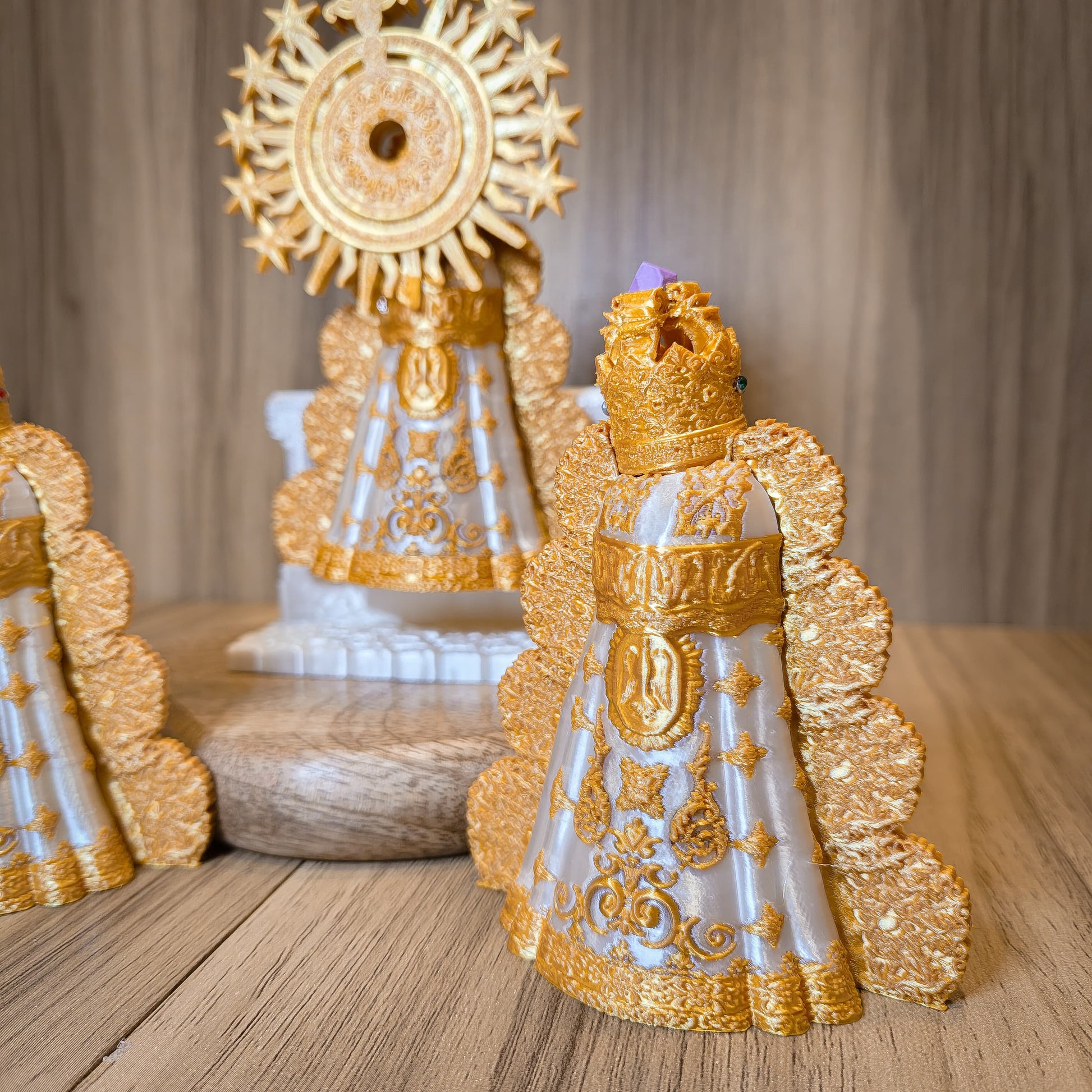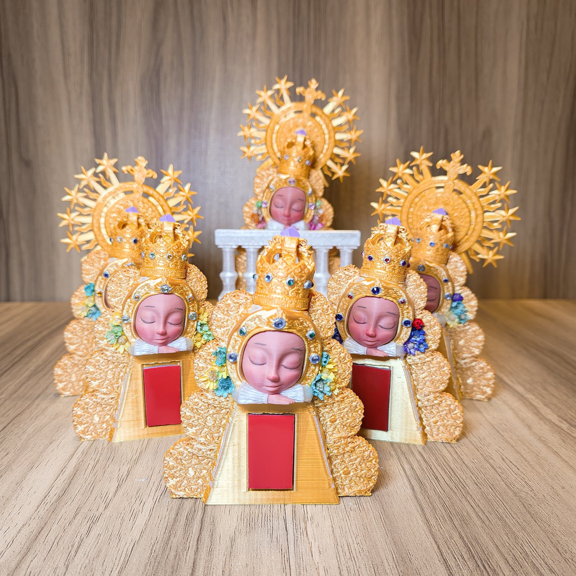 Con detalles delicados que evocan su manto blanco, su corona dorada y el profundo amor del pueblo rociero, esta figura es un símbolo de fe, esperanza y tradición. Perfecto para coleccionistas y devotos, es mucho más que un angelito: es un pedacito del Rocío que puedes tener siempre cerca.