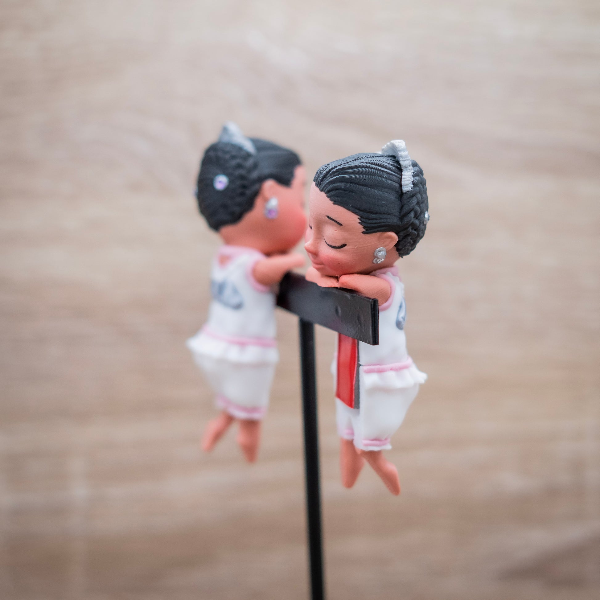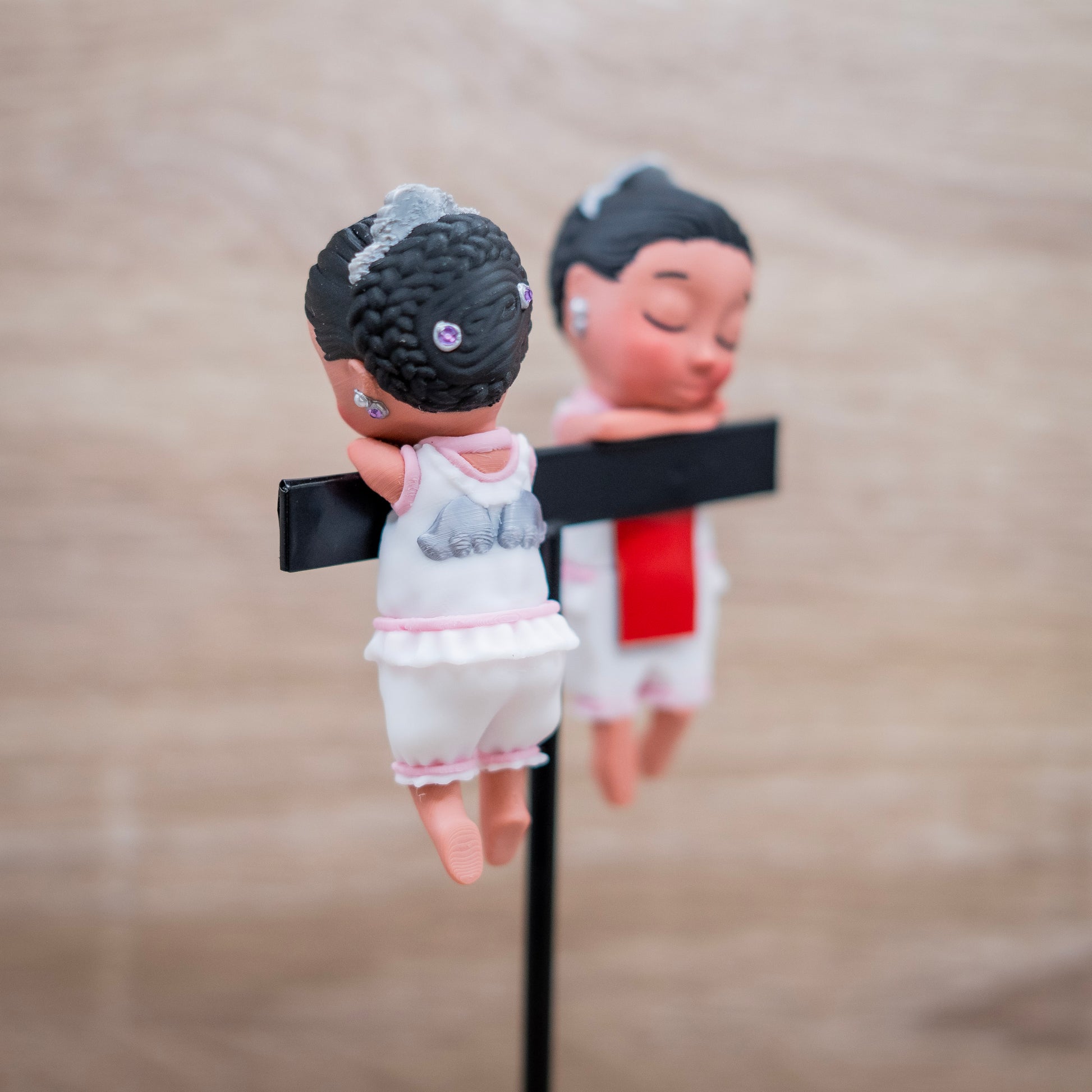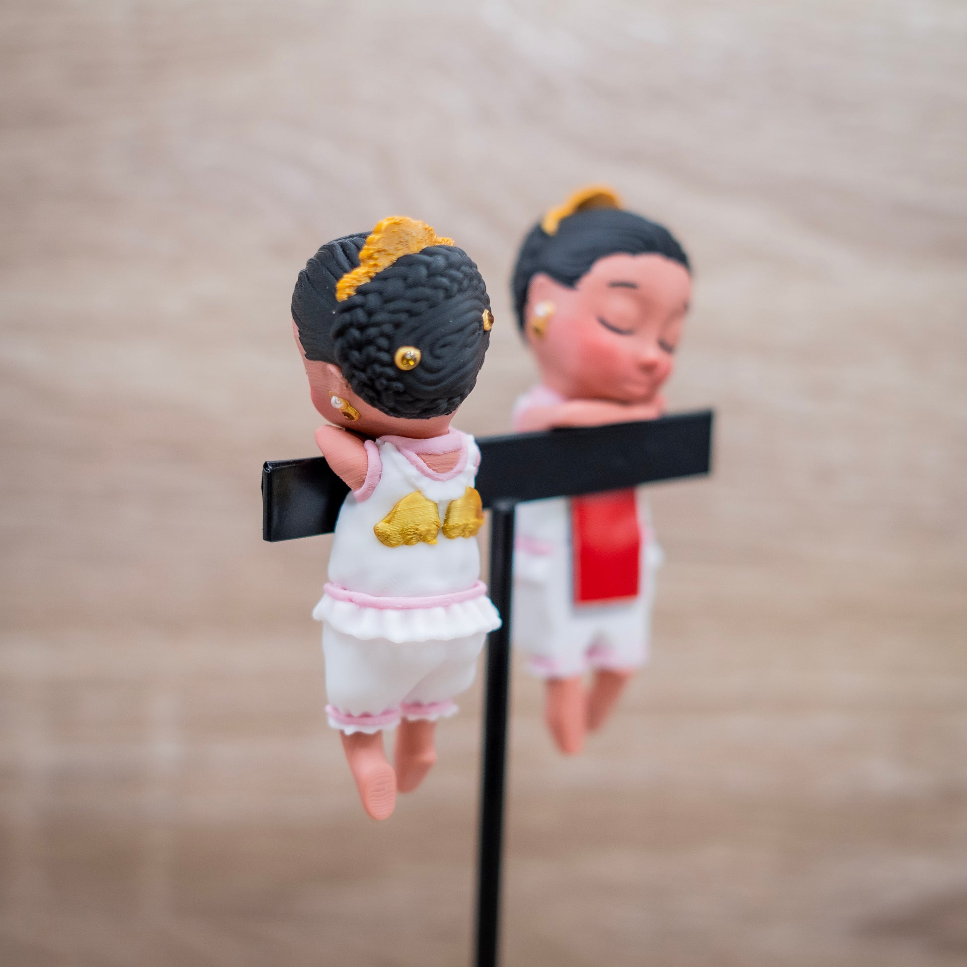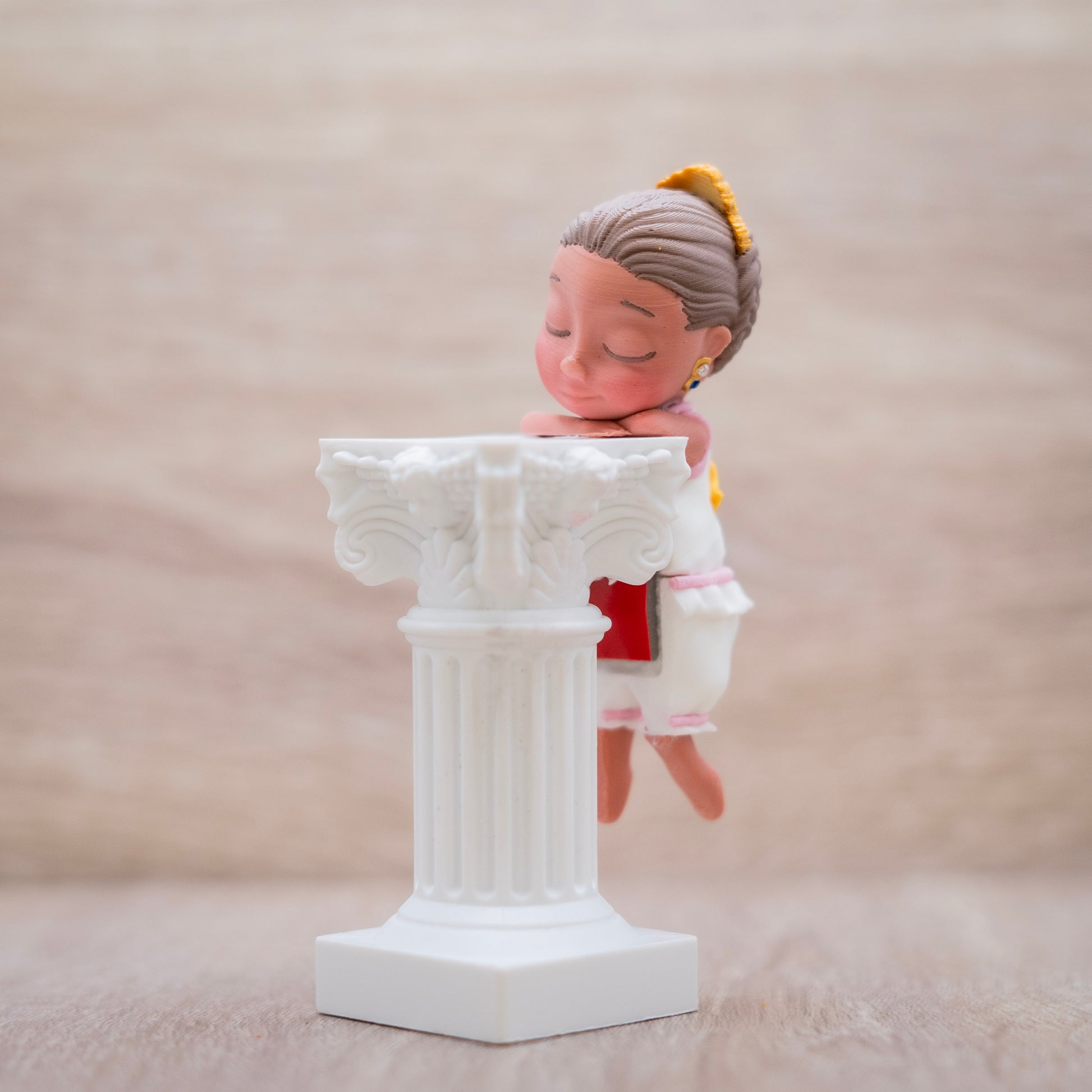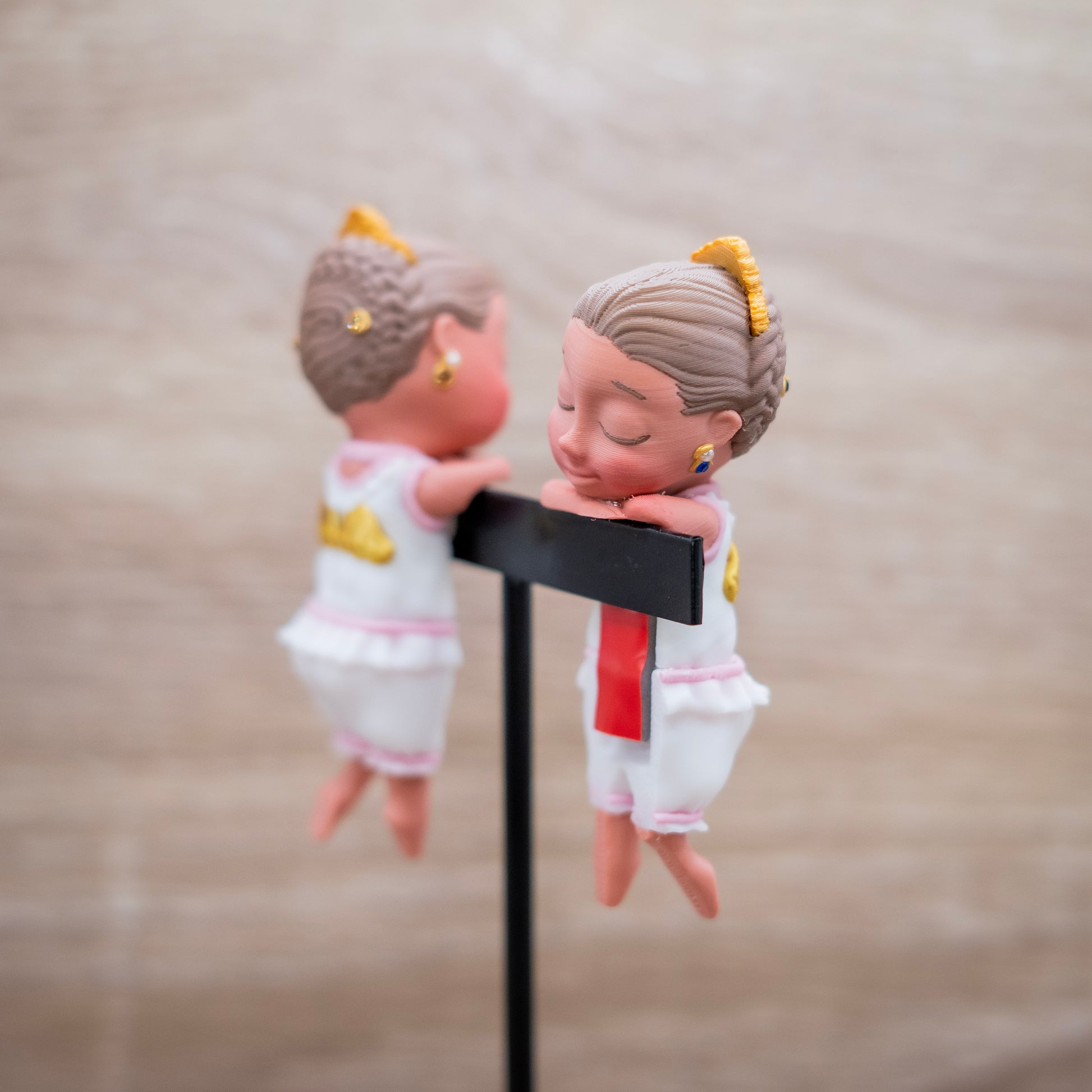 Si eliges la opción personalizable, tendrás la libertad de escoger el color de pelo, las peinetas y las joyas de tu Angeleta, ¡creando una muñequita única a tu gusto!