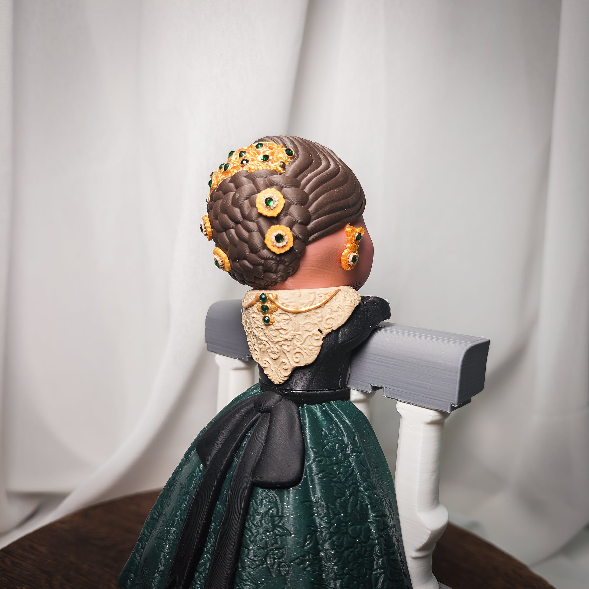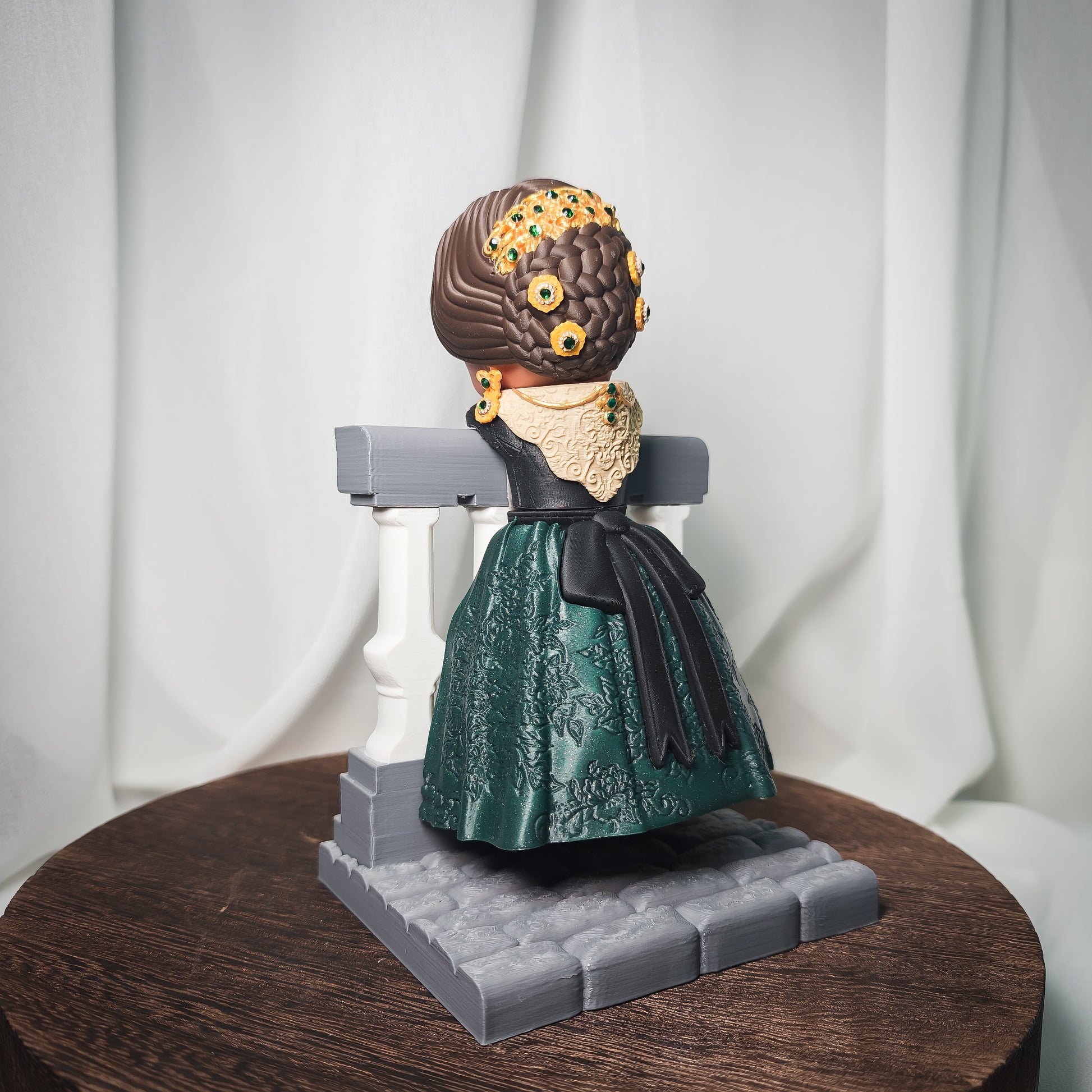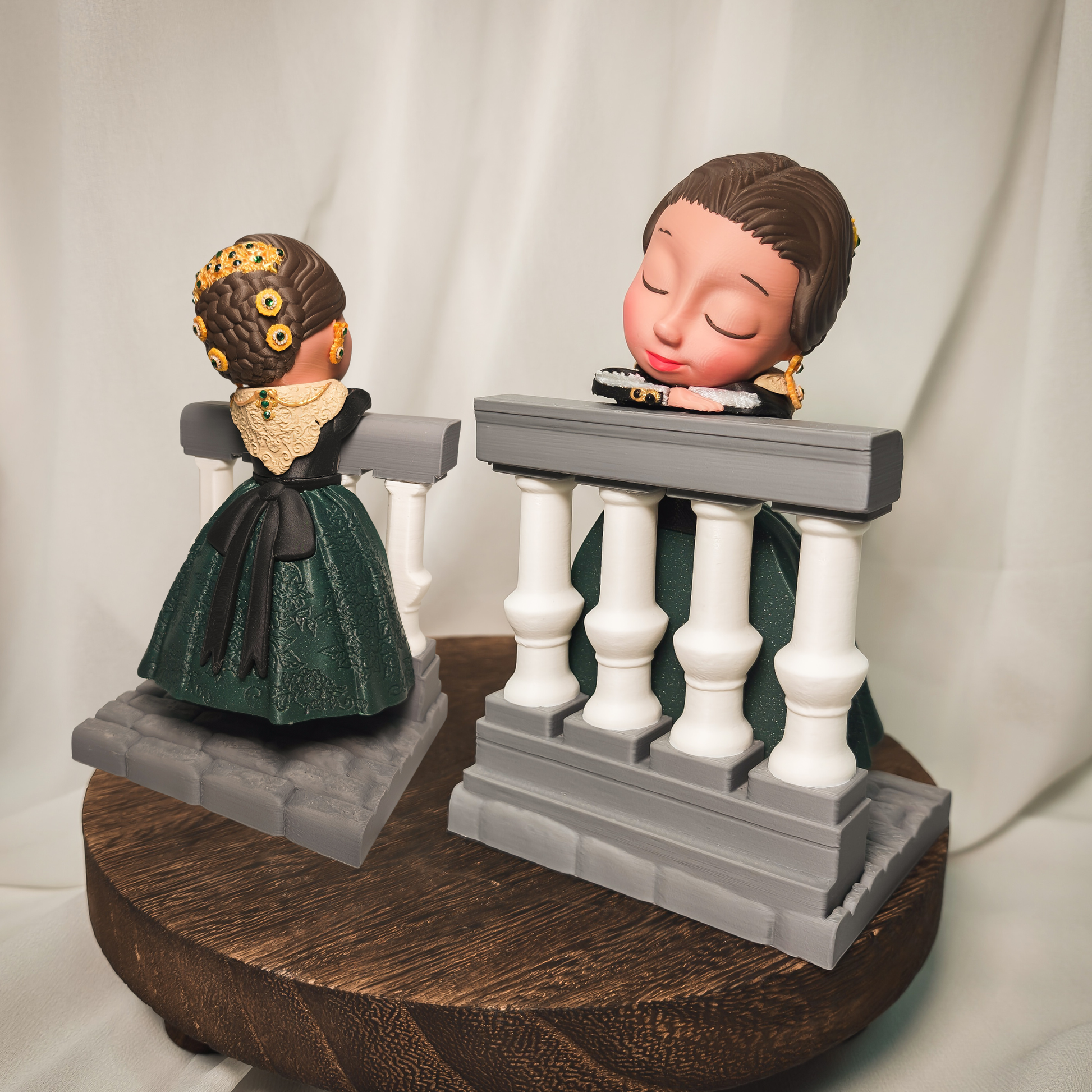 Por fin os presentamos nuestra figura de 15cm de nuestra querida Castellonera! una figura con todo lujo de detalles en la que puedes elegir el color de pelo y de falda para personalizarla! Con todas sus joyas doradas y verdes y su manteleta beige, está lista para ser el regalo perfecto!