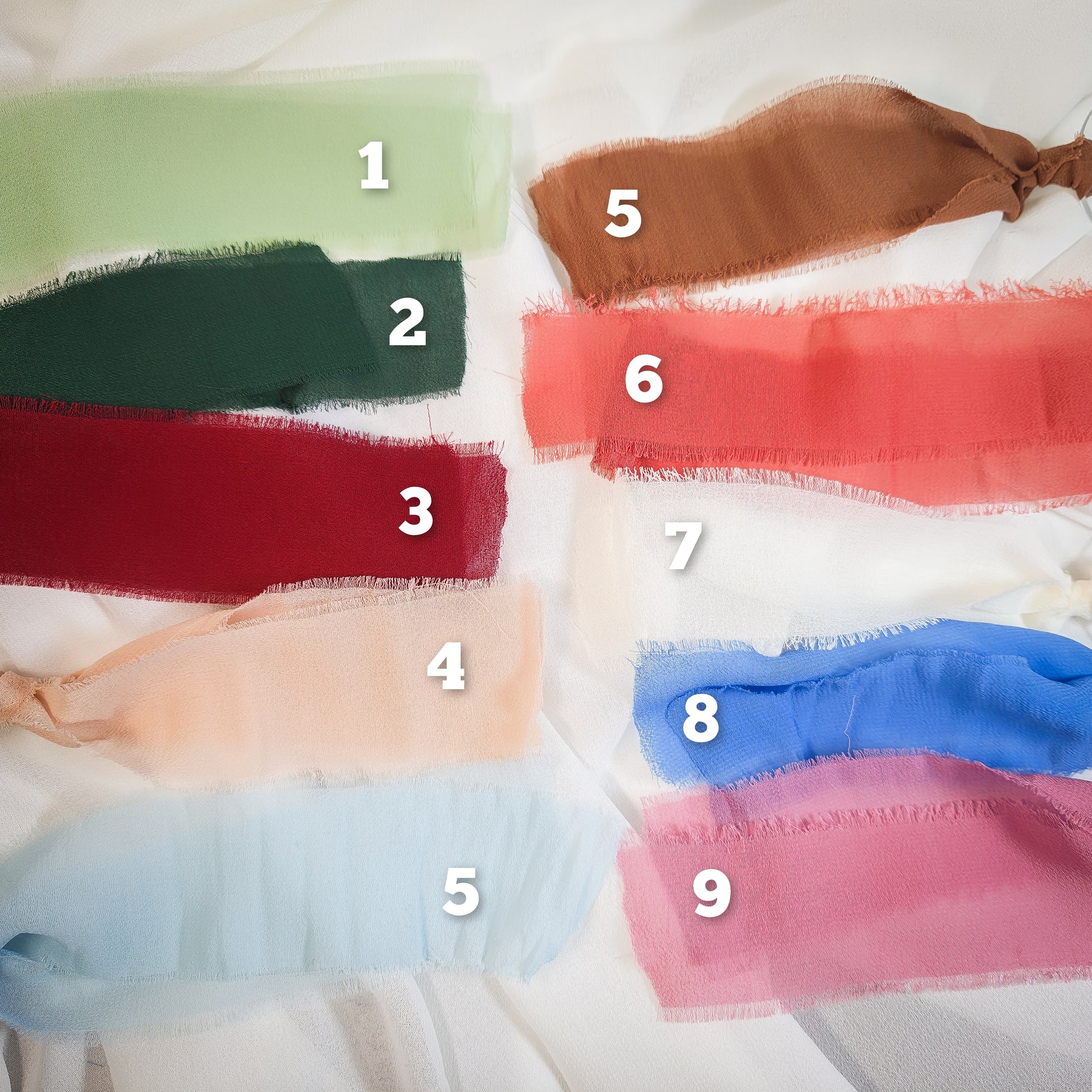 Advertencia: los colores de las cintas pueden variar ligeramente de la foto, al igual que el largo de la cinta puede variar unos cm de una a otra (están cortadas a mano). Las perlas de la Angeleta serán acordes al color de la cinta.